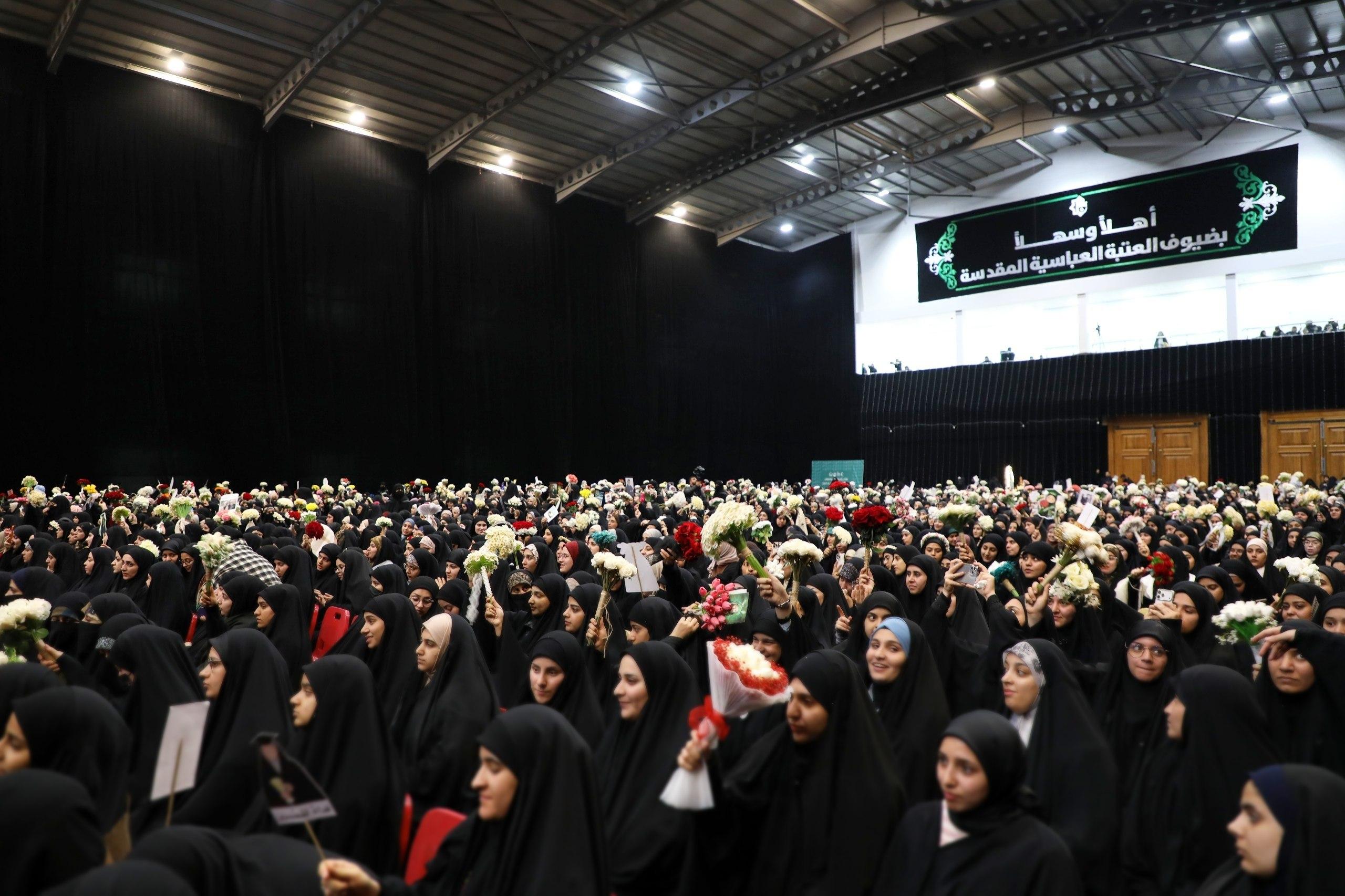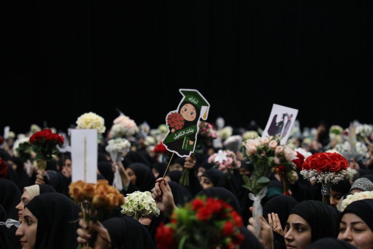 شهد مجمّع أبي الفضل العباس (عليه السلام)، إقامة الحفل الترحيبي الخاص بتخرّج طالبات الجامعات العراقية المشاركات في مشروع (بنات الكفيل) بنسخته العاشرة، وذلك بحضور واسع من داخل العراق وخارجه، فضلًا عن ضيوف مهرجان روح النبوّة الثامن. واستُهلّت الفعاليات بجلسة قرآنية مباركة تضمّنت تلاواتٍ عطرة من آيات الذكر الحكيم، قدّمتها أربع قارئات من دول العراق وإندونيسيا وأفغانستان وإيران، حيث أدّت كل قارئة تلاوتها بمقامٍ قرآنيٍّ مميّز. وتضمّن برنامج الحفل فقرةً حوارية بعنوان (حكاية إنجاز)، استعرضت مسيرة مهرجان روح النبوّة وحفل تخرّج (بنات الكفيل)، مسلّطةً الضوء على أبرز محطات العمل والتجربة التربوية التي تقف خلف هذه المشاريع. وأعقبت ذلك كلمة لمسؤولة شعبة مدارس الكفيل الدينية النسوية، السيّدة بشرى جبار الكناني، بيّنت فيها رؤية الشعبة في تكامل مشروع مهرجان روح النبوّة، والحفل المركزي لتخرّج (بنات الكفيل)، ومدارس الكفيل الدينية النسوية، ورابطة بنات الكفيل التطوعية، مؤكدةً أن هذه المشاريع تمثّل منظومة عمل متكاملة قائمة على الوعي، والسلوك القيمي، والاستدامة في الأداء. وأوضحت الكناني أن رابطة بنات الكفيل التطوعية جاءت استجابةً لحاجة حقيقية إلى ملاكات نسوية واعية تعمل ضمن إطار تنظيمي وتدريبي بإشراف مكتب المتولي الشرعي للشؤون النسوية وإدارة مدارس الكفيل الدينية النسوية، بما يضمن الانضباط المؤسسي وتراكم الخبرات وجودة الأداء. وتشير الإحصاءات أن عدد المنتسبات إلى رابطة بنات الكفيل التطوعية بلغ نحو (10,898) متطوعة من مختلف محافظات العراق، إضافةً إلى مشاركات دولية في الزيارة الأربعينية. كما تضمّن الحفل عرض فيلمٍ مصوّر لقصيدة للشاعرة ميعاد الطالقاني حول معاني التكليف وأبعاده الإيمانية والقيمية، وسلّط الضوء على لحظة الانتقال إلى مرحلة جديدة من الوعي والمسؤولية، ضمن إطارٍ فنيٍّ هادف عكس قدسية التكليف وأثره في بناء الشخصية. وشهد البرنامج كذلك تقديم مشهدٍ تمثيليٍّ مؤثّر بعنوان (سيدة الصمود)، قدّمته فرقة نبع الجود التابعة لمعهد القرآن الكريم، استُلهم من القصص القرآنية والسيرة النبوية الشريفة، وجسّد مواقف السيدة خديجة الكبرى (عليها السلام) في نصرة الرسالة المحمدية، إلى جانب إبراز تضحياتها العظيمة ودورها المحوري في مرحلة حملها بسيدة نساء العالمين فاطمة الزهراء (عليها السلام)، بوصفها أنموذجًا خالدًا للمرأة المؤمنة الداعمة للحق.