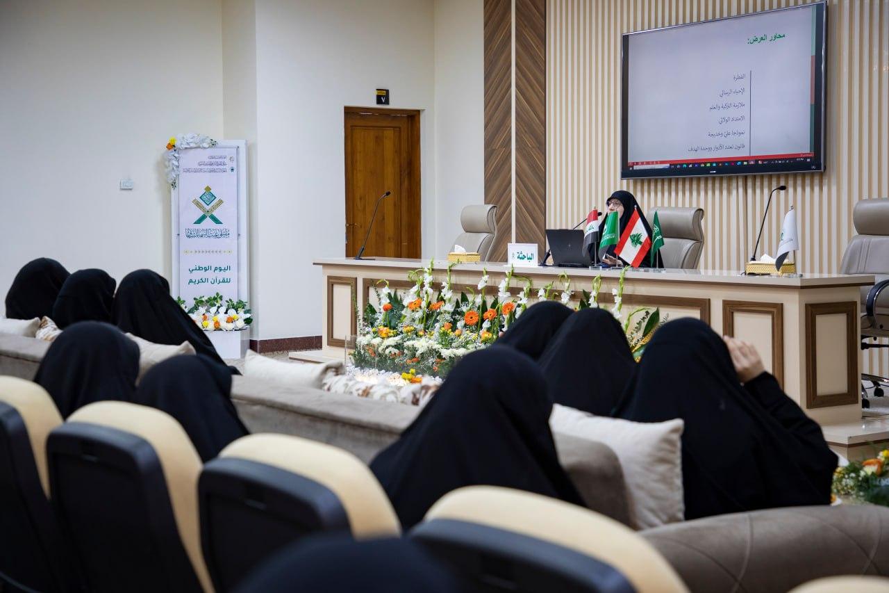 قدمت الباحثة زهراء حسين كوراني بحثًا بعنوان "تجديد الفطرة وإحياء مسار الهداية" وذلك ضمن فقرات ملتقى (غيث السماء) بنسخته الثانية. ونظمت الملتقى شعبة فاطمة بنت أسد (عليها السلام) للدراسات القرآنية التابعة لمكتب المتولي الشرعي للشؤون النسوية في العتبة المقدسة، تحت شعار (بين الوحي ووفاء خديجة بداية الرحمة للعالمين)، تزامنًا مع ذكرى المبعث النبوي الشريف، واحتفاءً باليوم العالمي للقرآن الكريم. وأوضحت الباحثة في بحثها: "أنّ الإنسان خلقه الله تعالى بفطرة سليمة طاهرة مزوّدًا بالقدرة على التمييز بين الخير والشر ومستعدًا للسير في طريق الكمال الروحي والمعنوي، وأنّ هذه الفطرة تحتاج إلى من يهديها ويوقظها فتأتي البعثة النبوية لإحياء القلوب ووضع الإنسان على مساره الطبيعي نحو الخير والحق، كما يبرز دور السيّدة خديجة الكبرى (عليها السلام) كركن بشري أساسي في تثبيت الدعوة احتضنت النبي المصطفى (صلى الله عليه وآله) وساندته في بداية الرسالة وعملت على حماية نور الله في الأرض مع اهتمامها بالإمام علي (عليه السلام) ومن كان يحبه تعبيرًا عن إدراكها لمكانته ومنزلته عند النبي لتتجلّى بذلك حكمة الله في الخلق والبعثة حيث تتكامل الفطرة والولاية والدور البشري في منظومة واحدة تنير الطريق نحو الكمال الإنساني. وأشارت الباحثة: "إلى أنّ أهداف البحث تمثّلت في تحليل مفهوم الفطرة الإنسانية كما ورد في النصوص الدينية وإبراز دورها في تشكيل وعي الإنسان الأخلاقي والروحي وبيان العلاقة بين البعثة النبوية وإحياء الفطرة مع تسليط الضوء على الدور المركزي للسيّدة خديجة في احتضان الرسالة وتثبيت النبي وبيان قيمتها البشرية والإيمانية وبيان العلاقة بين الفطرة والولاية والدور البشري في صياغة منظومة الهداية الإلهية". ويأتي ملتقى (غيث السماء) مساهمةً في تعزيز الوعي الثقافي والعلمي ونشر تعاليم الذكر الحكيم ضمن سلسلة من الأنشطة التي تهدف إلى نشر علوم الثقلين الشريفين وتطوير ثقافة المرأة ليشكّل الملتقى انطلاقة للاحتفاء باليوم العالمي للقرآن الكريم وترسيخ دوره في المجتمع.