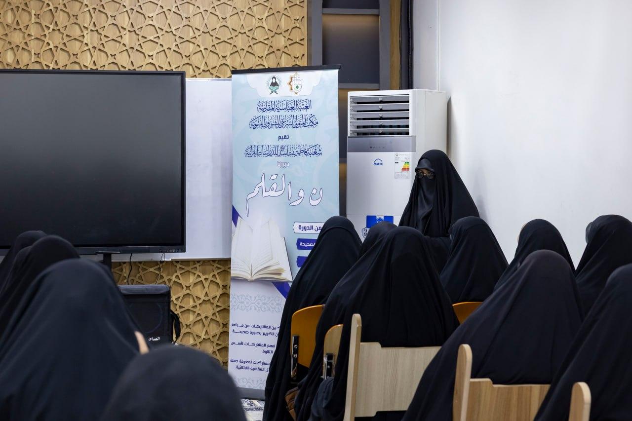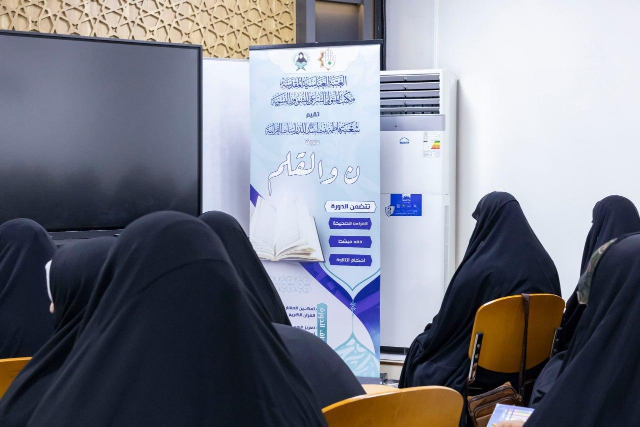 أعلنت شعبة فاطمة بنت أسد (عليها السلام) للدراسات القرآنية، التابعة لمكتب المتولّي الشرعي للشؤون النسوية في العتبة العباسية المقدّسة، عن إطلاق النسخة الرابعة من دورة (ن والقلم). وأوضحت مسؤولة الشعبة، السيدة فاطمة الموسوي، أنّ الدورة تتجدّد في نسختها الرابعة لتُقام على مدار العام، حيث تتراوح مدة كل دفعة بين ثلاثة إلى أربعة أشهر، مشيرةً إلى أنّها شهدت إقبالًا واسعًا لما تحقّقه من أثر ملموس في تطوير مستوى المشاركات. تتضمّن الدورة تعليم أساسيات القراءة الصحيحة، إلى جانب دروس في أحكام التلاوة التي تُعد مكمّلة لها، فضلًا عن تقديم دروس فقهية تُعنى ببيان المسائل الابتلائية اليومية التي تحتاجها المرأة في حياتها.