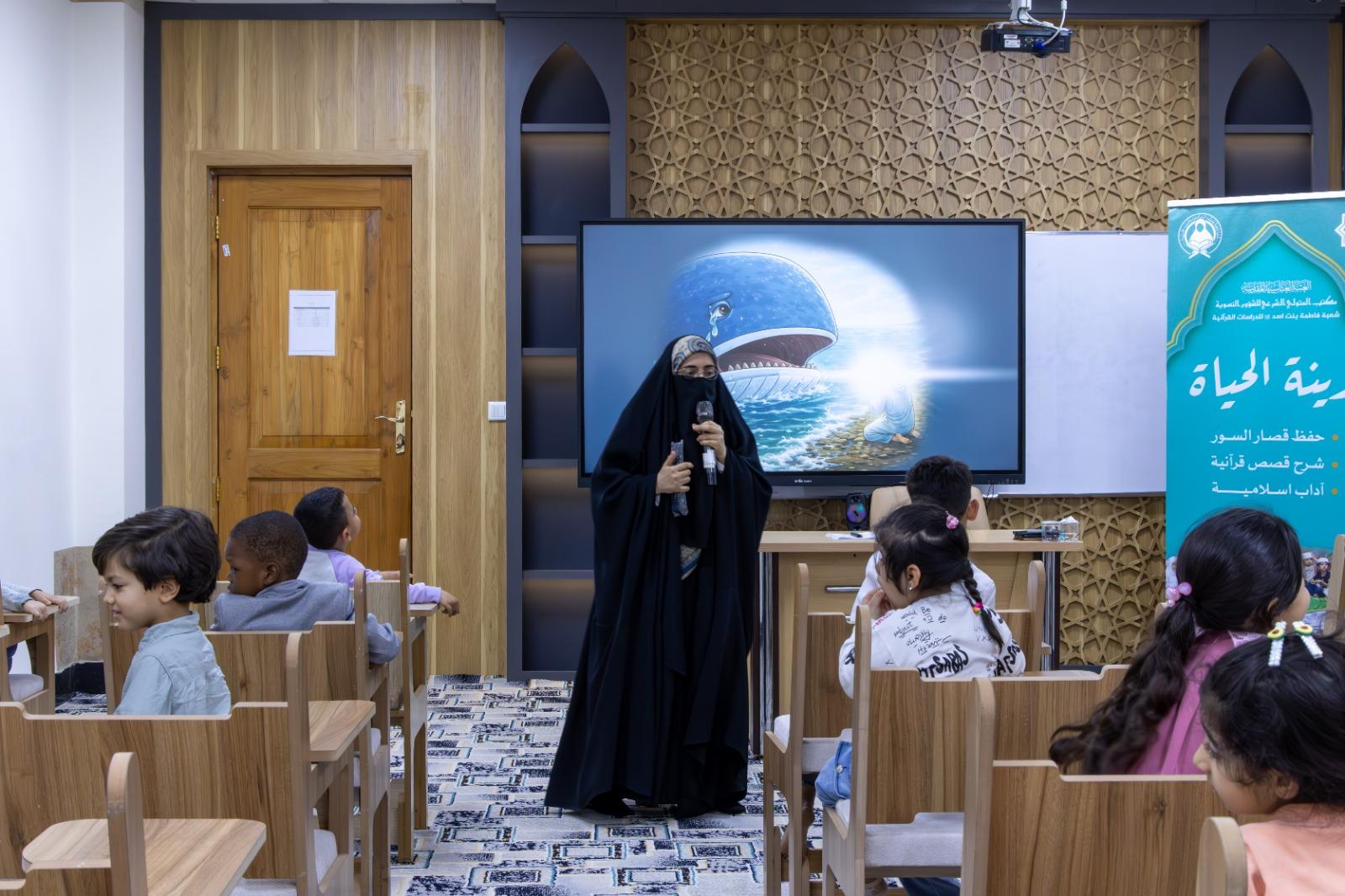 استأنفت شعبة السيدة فاطمة بنت أسد (عليها السلام) للدراسات القرآنية، التابعة لمكتب المتولي الشرعي للشؤون النسوية في العتبة العباسية المقدسة، برنامجها القرآني الخاص بالأطفال (زينة الحياة)، ضمن جهودها المتواصلة في نشر الثقافة القرآنية وتعزيز الارتباط بكتاب الله الكريم. قالت مسؤولة الشعبة، السيدة فاطمة الموسوي، إنّ البرنامج يأتي في إطار حرص الشعبة على تقديم خدماتها القرآنية لفئتي المرأة والطفل، والعمل على تنمية الوعي الديني لدى النشء وتعزيز علاقتهم بالقرآن الكريم بأساليب تربوية حديثة. هذا البرنامج يُقدَّم لأطفال المنتسبات في مركز الصديقة الطاهرة (عليها السلام)، من خلال دروس أسبوعية تتضمن حفظ قصار السور مع تقديم شرح مبسّط لمعانيها، بما يتناسب مع الفئة العمرية المستهدفة، ويعتمد على وسائل تعليمية تفاعلية، تشمل استخدام الفيديوهات والصور لعرض قصص الأنبياء (عليهم السلام) وعدد من القصص القرآنية. ومن الجدير بالذكر أنّ هذا البرنامج من الأنشطة القرآنية التي تنفذها الشعبة، بهدف ترسيخ القيم والمفاهيم القرآنية في نفوس الأطفال، والإسهام في إعداد جيل واعٍ ومتمسك بتعاليم القرآن الكريم.
